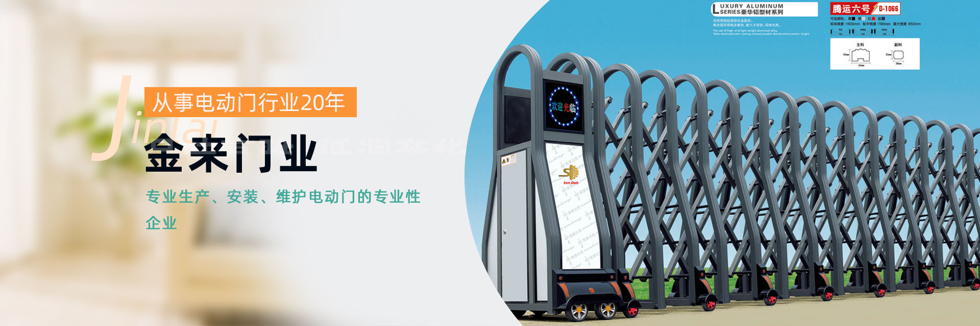 寧波金來門業有限公司是一家專業生產、安裝、維護電動門的專業性企業,公司位于美麗富饒的浙江省寧波市。公司生產的產品主要有卷簾門、伸縮門、快速門、提升門、道閘、停車場收費系統、工業門、車庫門、抗風門、防火門等電動門,廣泛適用于工廠、商業門面、車庫、商場、醫院、企事業單位等公共場所或住宅,為客戶私人定制并免費上門安裝。本公司立足于寧波,產品覆蓋全國,并具有完善的營銷體系和高素質的營銷人員,從而使產品知名度和市場覆蓋率日益擴大,銷售量穩步提高。公司始終堅持以客戶為中心,以科學管理為手段,充分開發和合理利用資源,持續不斷地改進,并以優質的產品、完善的設計滿足客戶需求。在市場經濟的大潮中,公司將一如既往、全心全意、兢兢業業、堅持不斷地開拓創新,使產品向高品質、高標準的方向邁進...